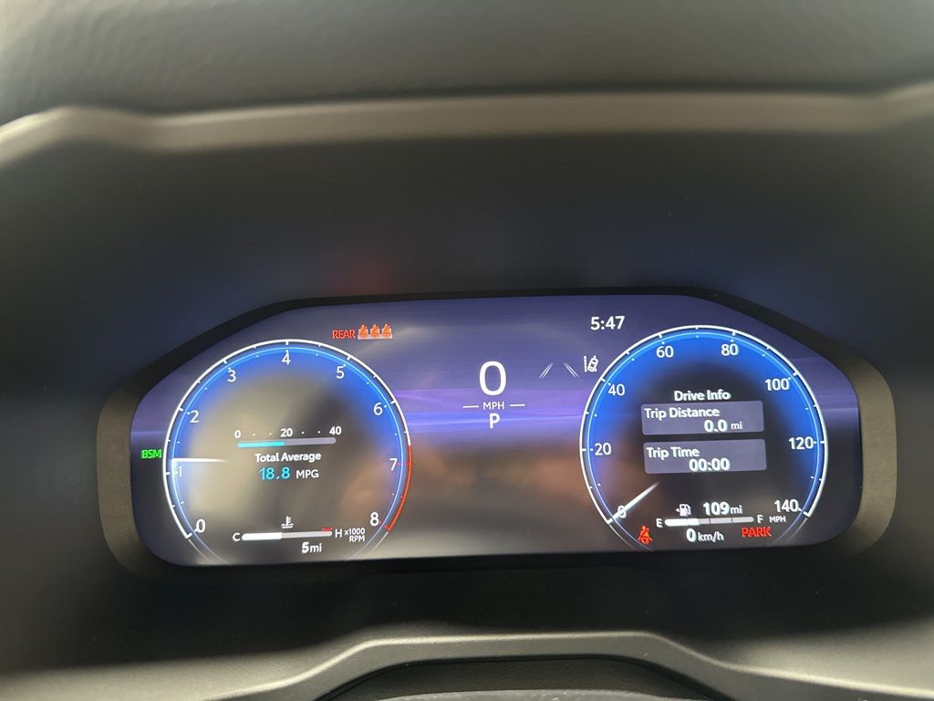 • 12.3-in. digital gauge cluster with customizable settings, odometer, tripmeters, clock, outside temperature, rear passenger seatbelt indicators, fuel gauge, hybrid energy monitor, battery charge meter, fuel economy information, trip timer, shift-position and scheduled maintenance indicators, and warning messages
