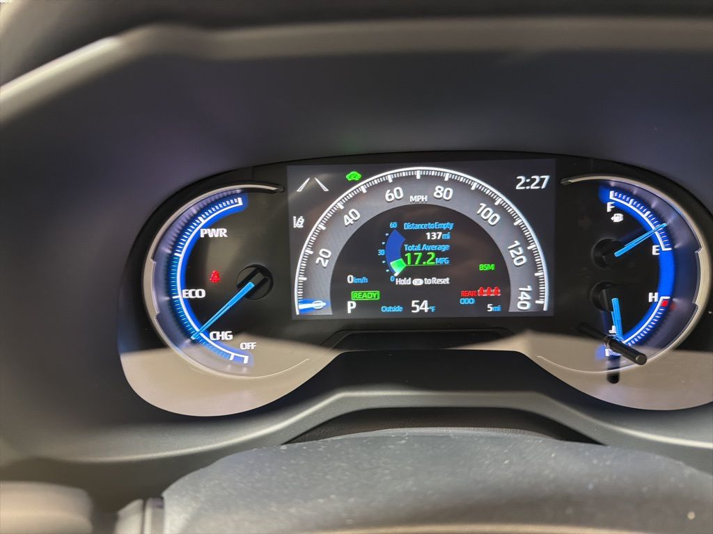 • Digital speedometer and instrumentation with analog hybrid power meter, coolant temperature, and fuel gauges 7-in. digital Multi-Information Display (MID) with customizable settings, odometer, tripmeters, clock, outside temperature, rear passenger seatbelt indicators, hybrid energy monitor, fuel economy information, trip timer, shift-position and scheduled maintenance indicators, and warning messages