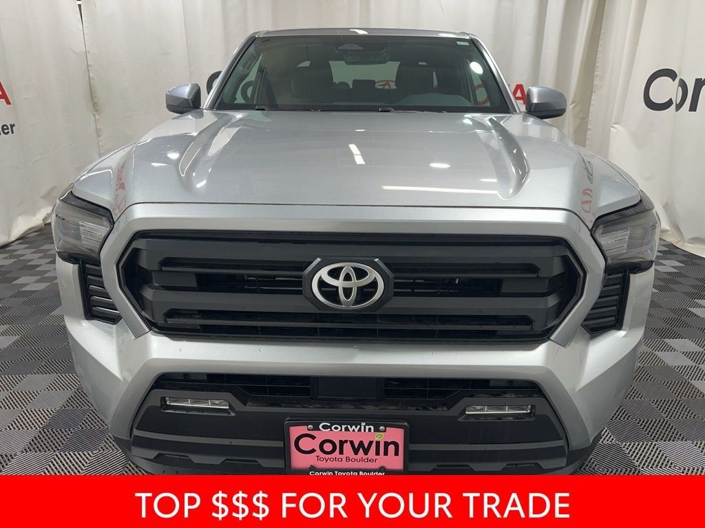 A bold blend of strength and style, our 2025 Toyota Tacoma SR5 Double Cab 4X4 in Celestial Silver Metallic delivers legendary off-road capability, advanced tech, and rugged design, perfect for tackling tough trails or turning heads around town! Powered by a TurboCharged 2.4 Liter i-FORCE 4 Cylinder providing 278hp to an 8 Speed Automatic transmission for strength to spare. An automatic limited-slip differential and 2-speed transfer case deliver dynamic traction, and this Four Wheel Drive truck sees nearly 24mpg on the highway with an expressive design. Our Tacoma is ready to take on your world with alloy wheels, LED lighting, a bold grille, a Class IV hitch receiver, and a rugged Sheet Molded Compound bed that resists scuffs and scratches. Load it up and put it to the test!