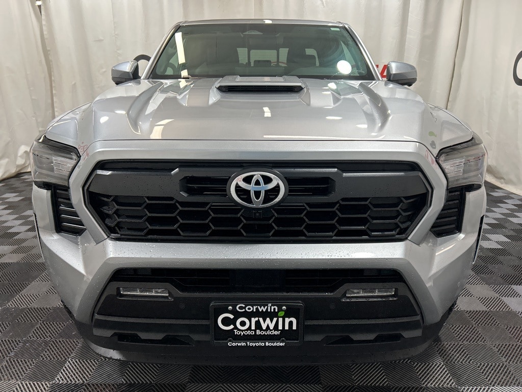 Built to conquer, our 2025 Toyota Tacoma TRD Sport Double Cab 4X4 in Celestial Silver Metallic challenges you to push your limits with rugged off-road capability, bold design, and performance! Powered by a TurboCharged 2.4 Liter i-FORCE 4 Cylinder delivering 278hp to an 8 Speed Automatic transmission with a 2-speed transfer case and an automatic limited-slip differential. This Four Wheel Drive truck returns nearly 24mpg on the highway. Rugged and robust, our Tacoma shows off LED lighting, fog lamps, 18-inch alloy wheels, LED bed lighting, a stamped easy-lower tailgate, a 400W/120V power supply, and a Class IV hitch receiver.
