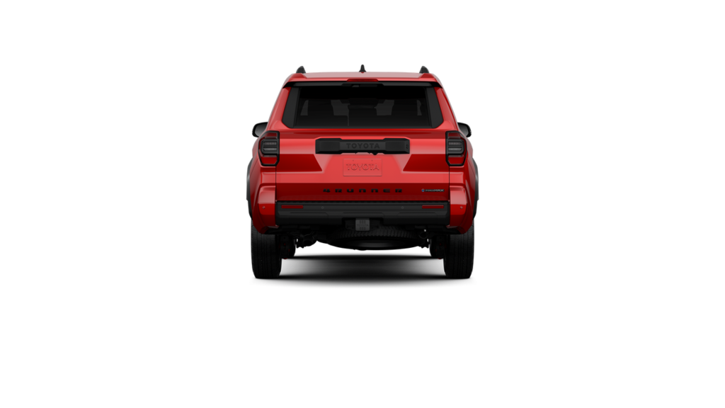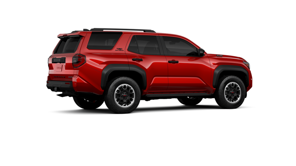 • Black honeycomb-style grille, mirror caps, door handles and overfenders color-keyed rear spoiler black 'TRD OFF ROAD' and '4RUNNER' badges
