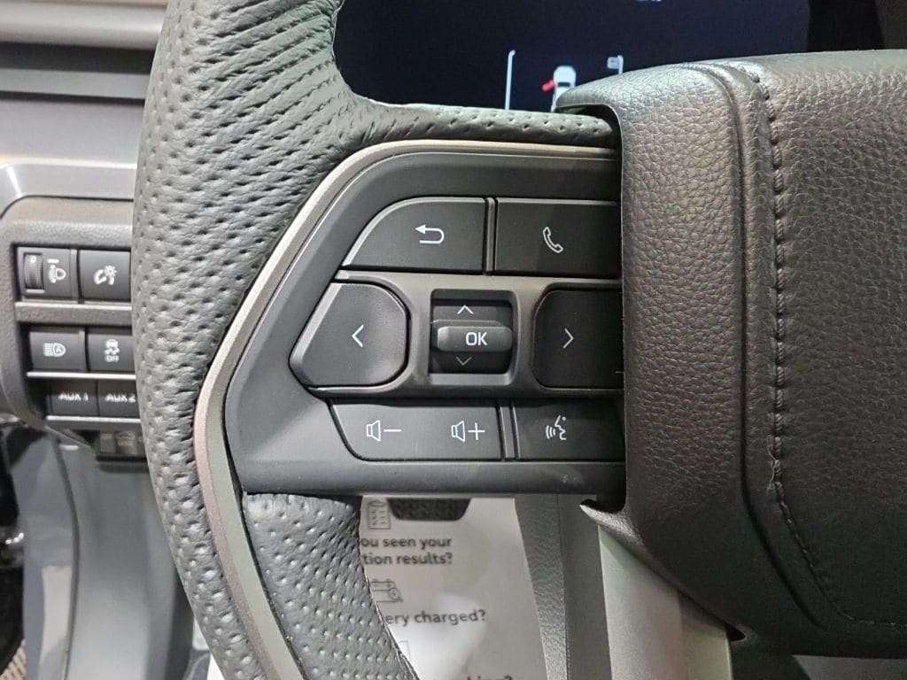 • Leather-trimmed manual tilt/telescopic steering wheel with phone, audio, display/infotainment, and Driver Assist controls