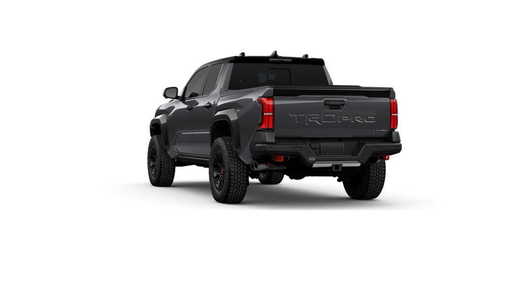 - 'TRD Pro' stamped power open-and-close tailgate with hands-free knee-lift assist, integrated taillight bump switches, and jam protection
