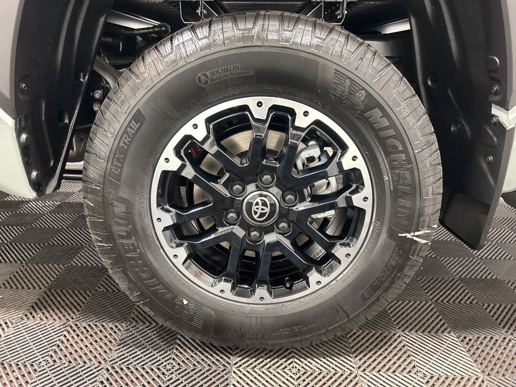 • TRD Off-Road Package - TRD Off-Road Package 18-in. TRD Off-Road alloy wheels with all-terrain tires TRD grille 'TRD OFF-ROAD' bedside decal Off-road suspension with Bilstein(R) shocks Skid plates Mudguards Red TRD engine start button TRD leather-wrapped shift knob Aluminum sport pedals Electronically controlled locking rear differential Multi-Terrain Select (MTS) Crawl Control (CRAWL) Downhill Assist Control (DAC)