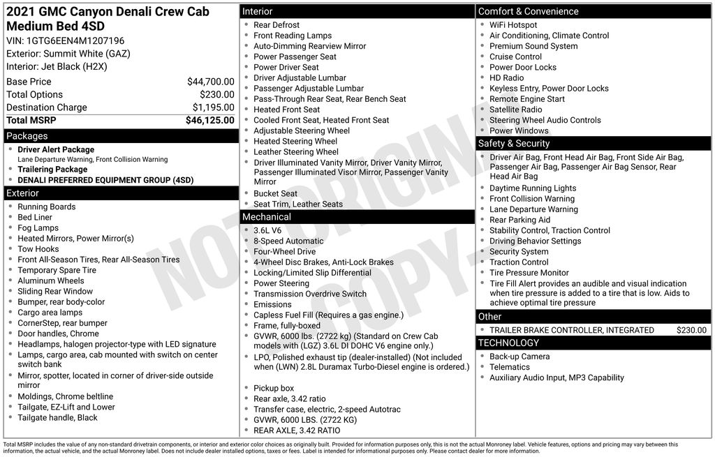 Whether you're tackling rugged terrain, towing your toys, or simply commuting in style, this 2021 GMC Canyon Denali is the perfect choice. Experience the perfect blend of capability, luxury, and technology. Visit us today and let us demonstrate how this exceptional truck can transform your driving experience.