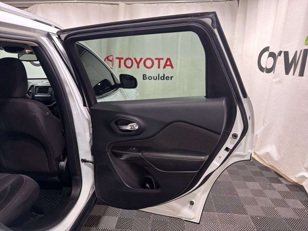 This Jeep Cherokee Latitude is equipped with a wealth of premium amenities, such as Uconnect 5.0 infotainment system, ParkView Rear Back-Up Camera, and a Heated Steering Wheel. The rugged yet refined exterior is complemented by 17-inch Aluminum Wheels and a Roof Rack, making it both stylish and versatile.