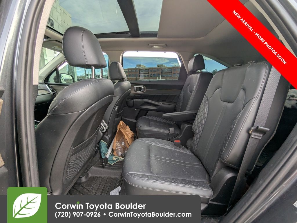 The Sorento's sleek and sophisticated exterior is accentuated by its striking Gray paint and bold design elements, while the spacious and well-appointed interior offers the perfect blend of comfort and convenience. Indulge in the luxurious Perforated Genuine Leather Seat Trim, enjoy the convenience of Smart Key with Push-Button Start and Remote Start, and let the Panoramic Sunroof fill the cabin with natural light.