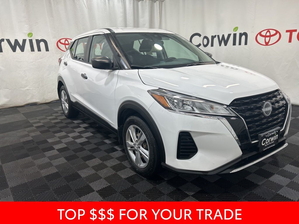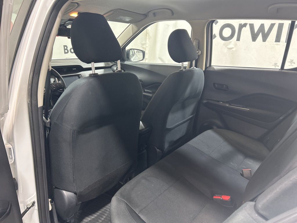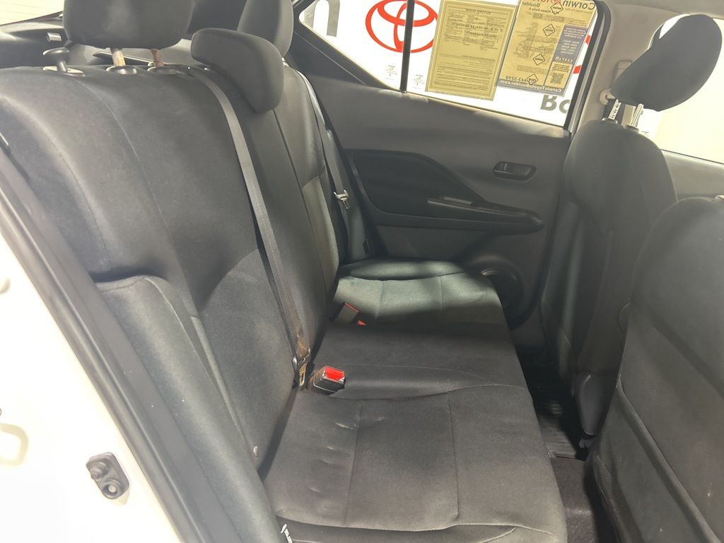 Slip into the comfortable cloth seats, adjust the telescoping steering wheel, and take advantage of the convenient steering wheel-mounted audio controls. The Kicks S also boasts a range of advanced safety features, including Dual Front Side Impact Airbags, Overhead Airbag, and Electronic Stability Control, ensuring your peace of mind on the road.
