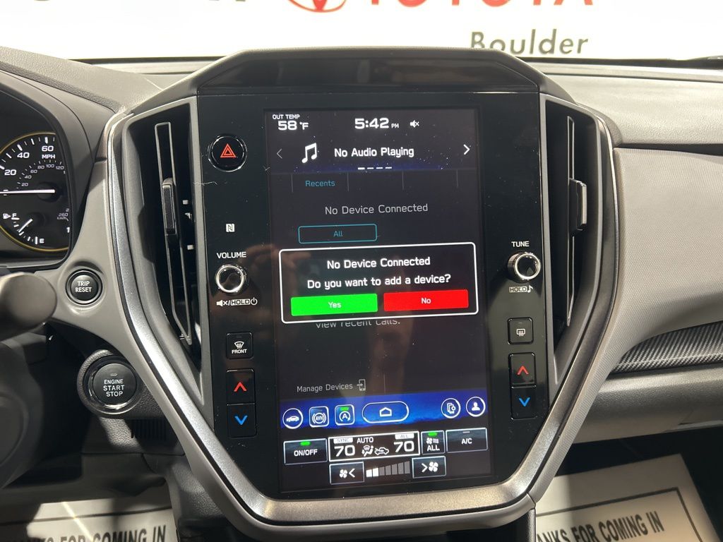 Our One Owner, Accident Free 2025 Subaru Crosstrek Sport AWD is fun to drive with a dynamic Crystal Black Silica design! Motivated by a 2.5 Liter BOXER 4 Cylinder providing 182hp to a paddle-shifted CVT for enhanced athleticism. This All Wheel Drive SUV is ready to run the trails with standard X-MODE, and it sees nearly 34mpg on the highway. Here to help you explore your world in style, our Crosstrek shows off adaptive LED headlights, fog lamps, a rear roof spoiler, roof rails, 18-inch alloy wheels, bold body cladding, and gloss-black mirror caps.