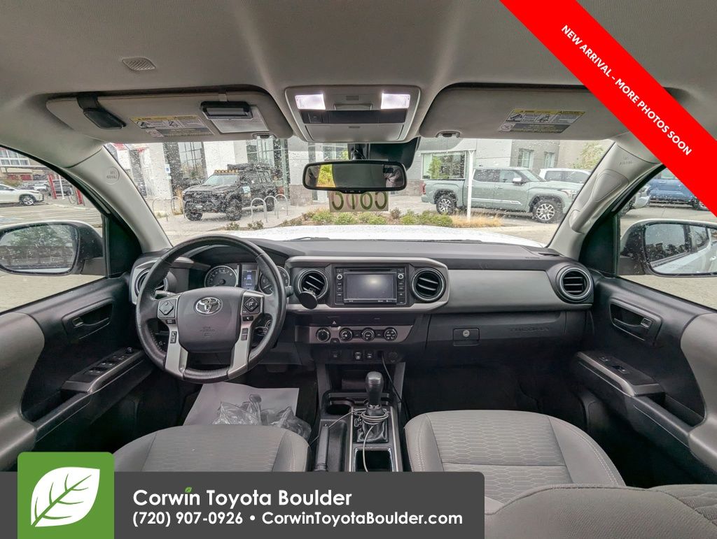 This Tacoma's exterior is finished in a sleek White color, complemented by body-color bumpers, overfenders, and a chrome rear bumper. The 16-inch silver alloy wheels and power sliding rear window with privacy glass add a touch of style and convenience. Inside, you'll find a well-appointed cabin with features like a premium audio system, dual-zone climate control, and a rearview camera.