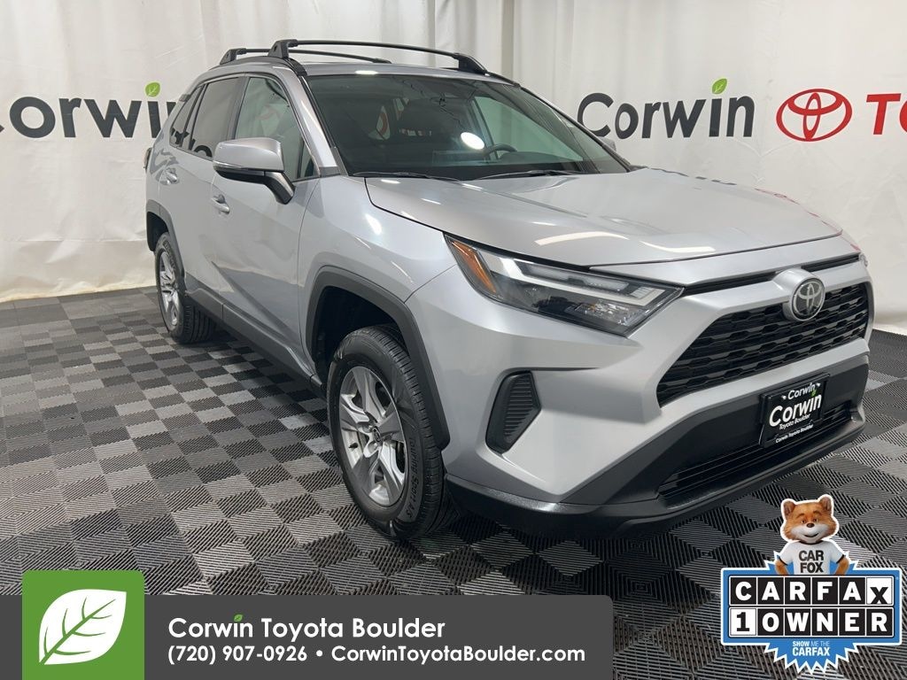 Our impressive One Owner 2023 Toyota RAV4 XLE AWD has versatile features for your next adventures, plus a bold Silver Sky Metallic design! Motivated by a 2.5 Liter Dynamic Force 4 Cylinder that provides 203hp tethered to an 8 Speed Automatic transmission. Also equipped with terrain management and Active Cornering Assist, this All Wheel Drive SUV is user-friendly and scores nearly 34mpg on the highway. Our RAV4's premium good looks shine bright with LED lighting, alloy wheels, black fender moldings/bumper accents, low-profile roof rails, dual chrome exhaust outlets, and heated power mirrors.