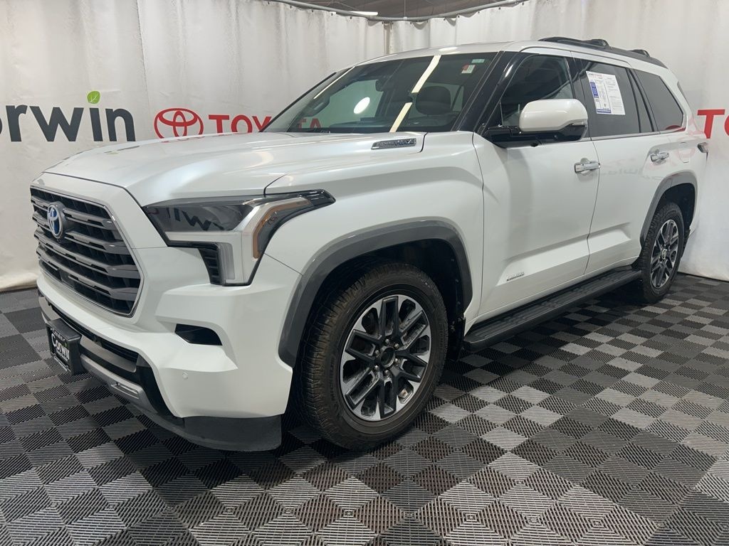 Buy our Accident Free 2023 Toyota Sequoia Limited 4WD and learn what it's like to live with a legend in Wind Chill Pearl! Powered by a Twin-TurboCharged 3.5 Liter i-FORCE MAX V6 and an Electric Motor delivering a combined 437hp to a 10 Speed Automatic transmission. This Four Wheel Drive SUV also features an automatic limited-slip differential for enhanced capability and scores nearly 22mpg on the highway. Showing off a dominating design, our Sequoia has a strong and stylish look with LED lighting, fog lamps, a power sunroof, 20-inch alloy wheels, heated power-folding mirrors, and black chrome-plated roof rails.