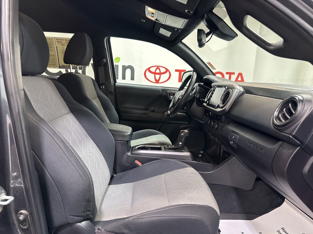 The Tacoma TRD Sport's rugged good looks are matched by its impressive capabilities. The bold exterior features a color-keyed rear bumper, power-adjustable heated side mirrors, and 17-inch machined alloy wheels that give this truck a commanding presence on the road. Step inside the spacious cabin and you'll be surrounded by premium amenities, including dual-zone climate control, a leather-wrapped steering wheel, and a premium audio system with SiriusXM satellite radio.