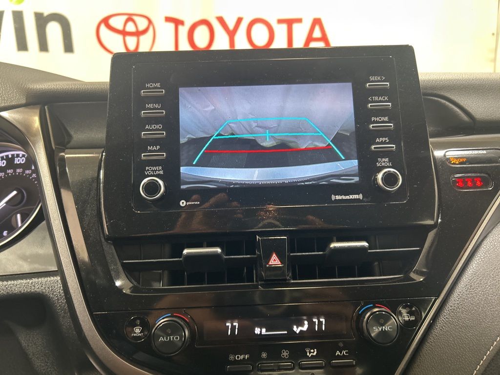 Step inside the Camry SE and you'll be greeted by a well-appointed interior that prioritizes your comfort and convenience. The sport-inspired SofTex seat trim with fabric inserts, along with the leather-wrapped steering wheel, create a refined and engaging atmosphere. Seamless smartphone integration through Apple CarPlay and Android Auto ensures you stay connected on the go.