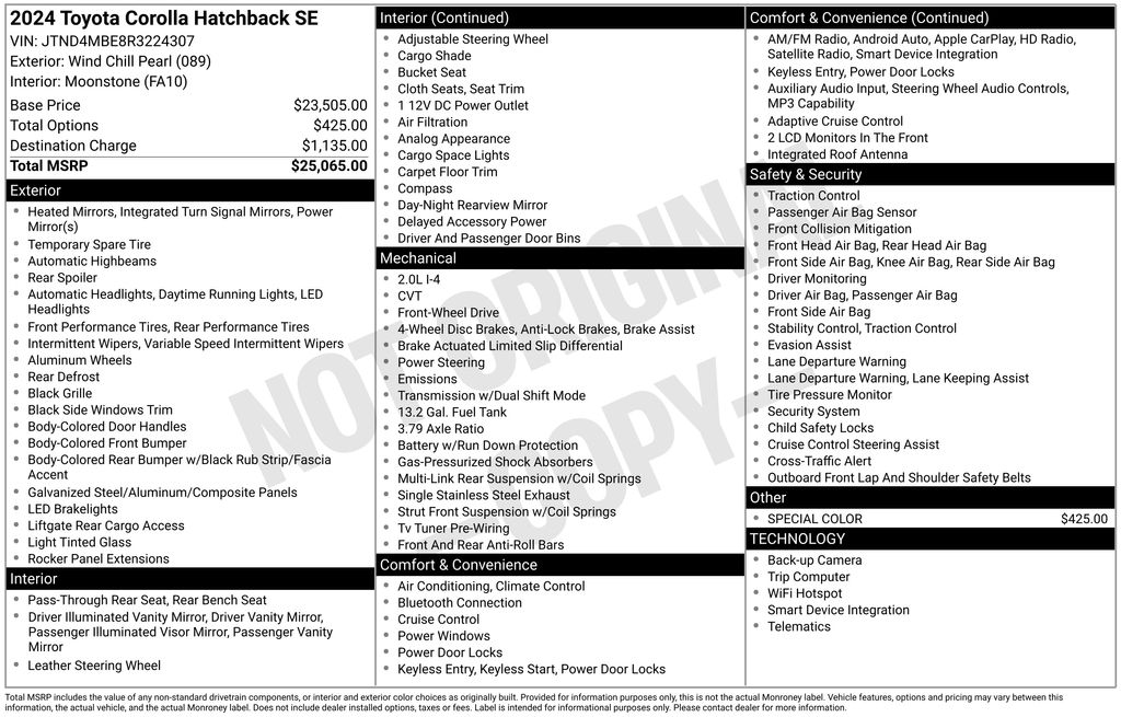 2024 White Toyota Corolla Hatchback SE