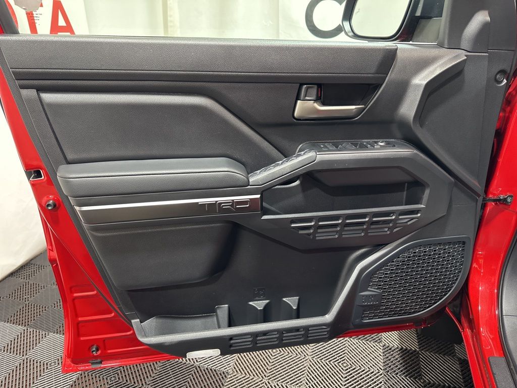 The exterior of this Tacoma TRD Sport is finished in a bold and eye-catching Red, complemented by the rugged and distinctive TRD styling cues. The long bed with an integrated power inverter provides ample cargo space, while the advanced safety features, including Pedestrian Detection and Automatic Braking, offer added peace of mind.
