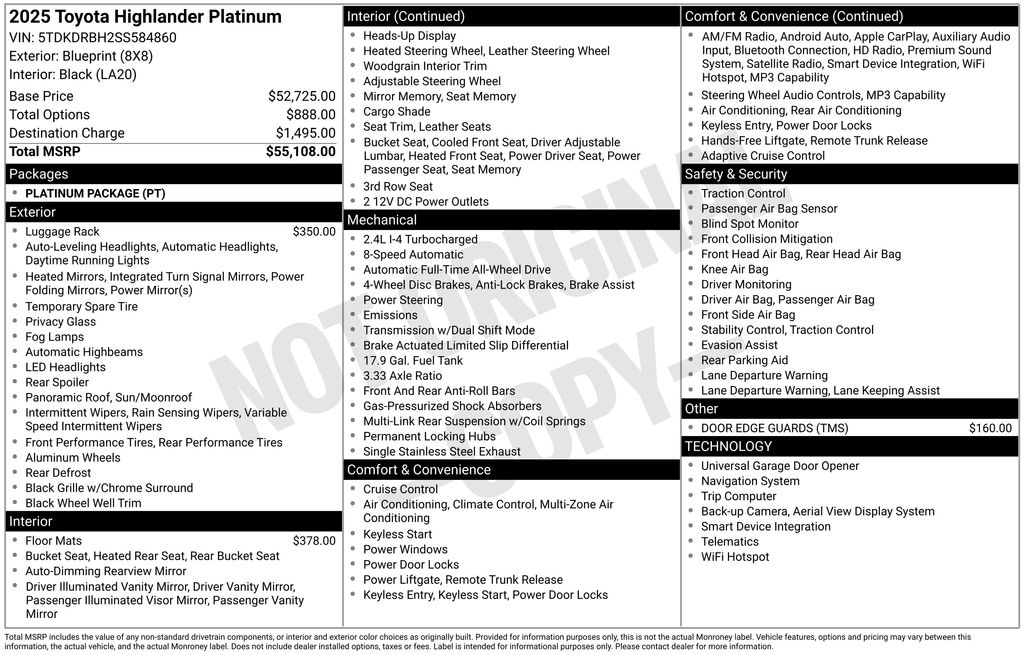 This 2025 Toyota Highlander Platinum is a true testament to the brand's commitment to quality, innovation, and customer satisfaction. Experience the difference for yourself and schedule a test drive today. We look forward to helping you find the perfect vehicle to elevate your driving experience.