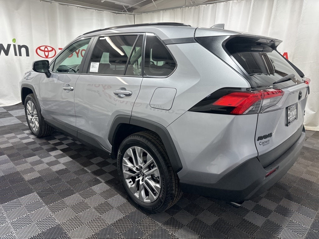 Our 2025 Toyota RAV4 XLE Premium AWD in bold Silver Sky Metallic is ready for adventures. Motivated by a 2.5 Liter Dynamic Force 4 Cylinder delivering 203hp to an 8 Speed Automatic transmission. This All Wheel Drive SUV also unlocks advanced capability with multiple performance modes, achieving nearly 35mpg on the highway. Our RAV4 shows off rugged sport-utility style with LED lighting, built-in fog lamps, a power liftgate, a power sunroof, dual chrome-tipped exhaust outlets, and 19-inch alloy wheels.