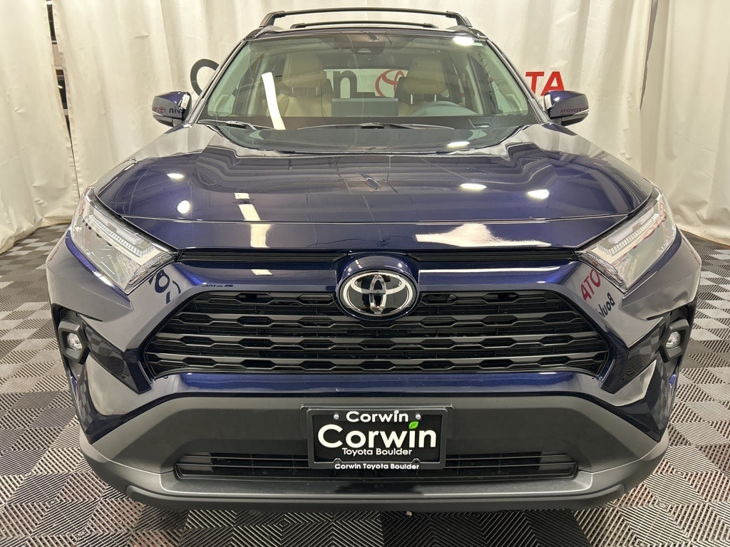 Our 2025 Toyota RAV4 XLE Premium AWD in bold Blueprint is ready for adventures. Motivated by a 2.5 Liter Dynamic Force 4 Cylinder delivering 203hp to an 8 Speed Automatic transmission. This All Wheel Drive SUV also unlocks advanced capability with multiple performance modes, achieving nearly 35mpg on the highway. Our RAV4 shows off rugged sport-utility style with LED lighting, built-in fog lamps, a power liftgate, a power sunroof, dual chrome-tipped exhaust outlets, and 19-inch alloy wheels.