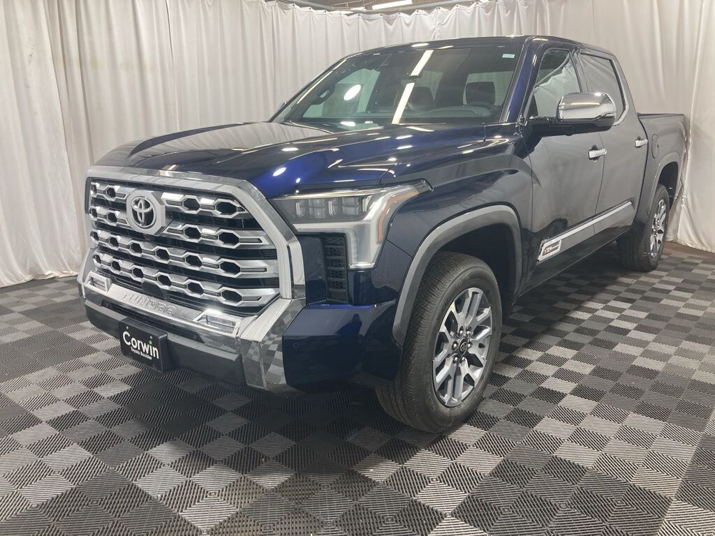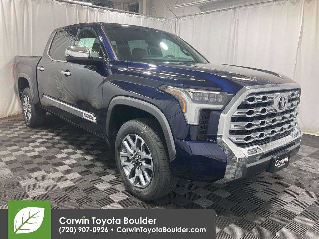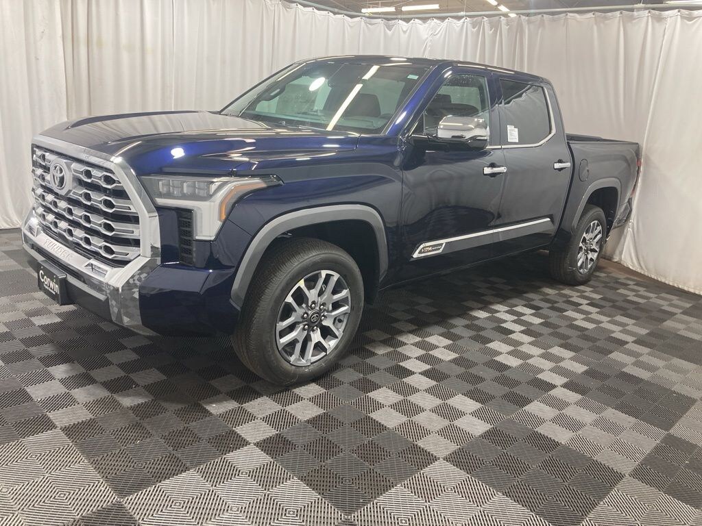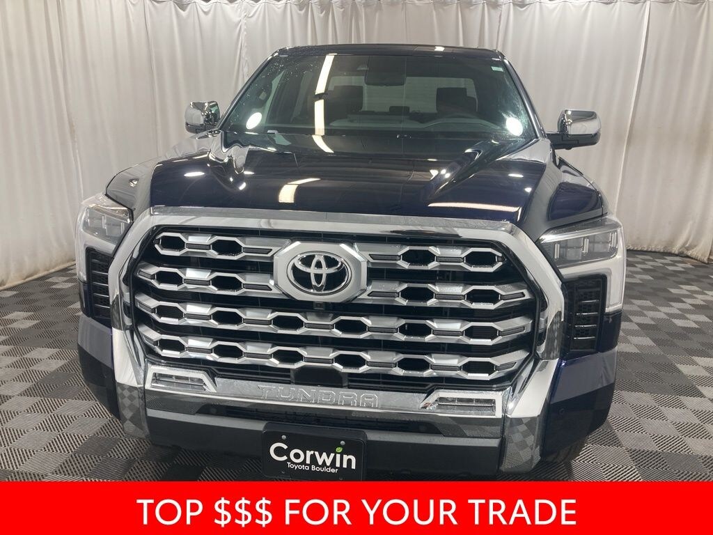 Our 2025 Toyota Tundra 1794 Edition CrewMax 4X4 in Blueprint takes its name and spirit for a legendary Texas ranch! Motivated by a Twin-TurboCharged 3.4 Liter i-FORCE V6 delivering 389hp to a 10 Speed Automatic transmission so you can work hard and play harder. This Four Wheel Drive truck also achieves nearly 22mpg on the highway with exclusive styling. Rugged and refined, our Tundra treats you to premium LED lighting, fog lamps, chrome accents, an aggressive grille, a panoramic sunroof, bold 20-inch alloy wheels, and a 120V/400W outlet.