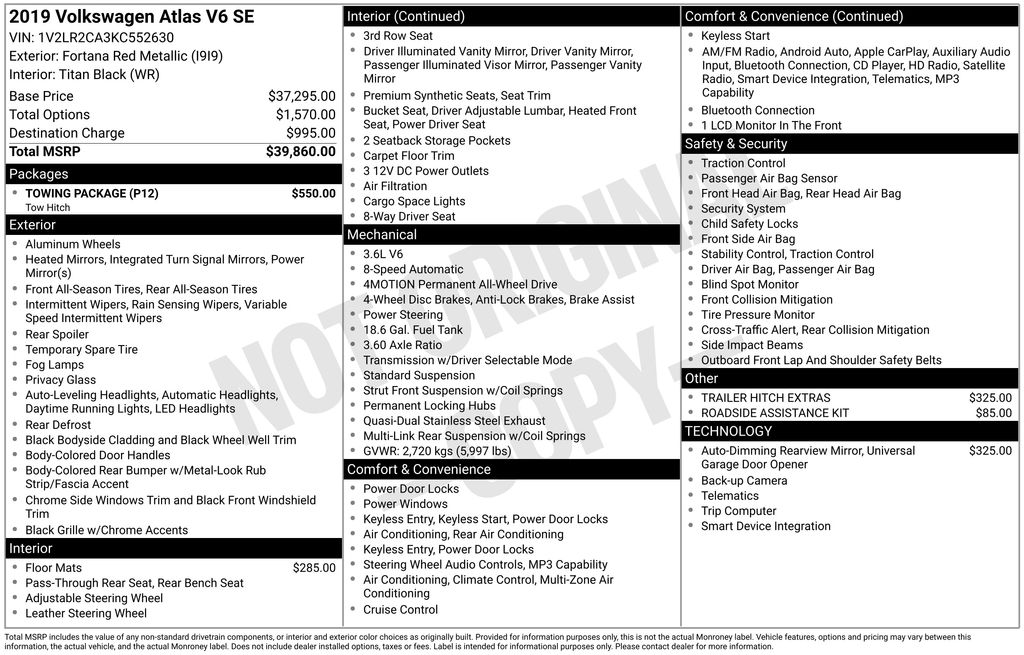 Whether you're navigating the daily commute or embarking on a road trip, the 2019 Volkswagen Atlas 3.6L V6 SE 4Motion is the perfect blend of style, capability, and comfort. Experience the difference for yourself and schedule a test drive today. We're confident you'll be impressed by this exceptional SUV.
